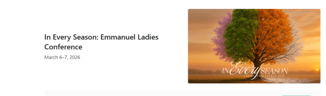 At Emmanuel Baptist Church, Newington, for one night and one day, March 6 & 7, 2026: Experience two meaningful days designed to help women recognize God’s seasons at work in […]
